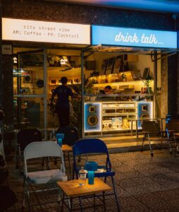 When the sun goes down, Drink Talk transforms into a lively cocktail bar, pouring inventive drinks well into the night (typically until around 02:00 AM).